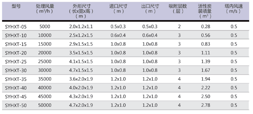 SYHXT活性炭吸附裝置設(shè)備主要參數(shù):