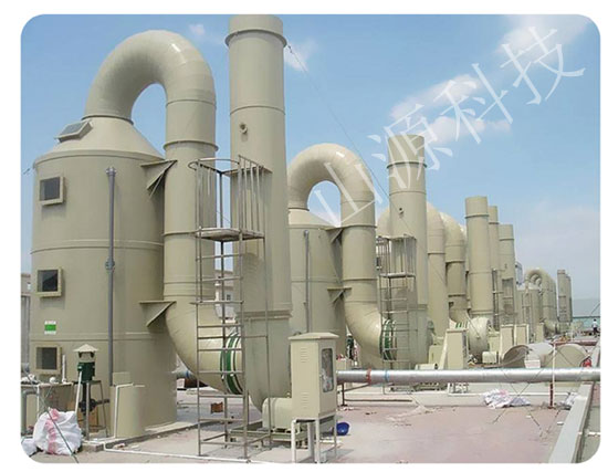 廢氣經(jīng)由填充式洗潘塔,采用氣液逆向吸收方式處理,以霧灑而下產(chǎn)生小水滴,廢氣則由塔底逆向流達(dá)到氣體接觸的目的。此處理方式可冷卻廢氣溫度、氣體調(diào)理及顆粒袪除,為確保塔內(nèi)氣體的均勻分布及氣液的完全接觸 ,因此采用良好填充濾材應(yīng)具有疏的表面,較大的自由表面積使氣體、液體的間停留時(shí)間増長(zhǎng),同時(shí)填充濾材的 選用應(yīng)有適當(dāng)?shù)目障兑詼p少氣體向上升的阻力,減少洗滌塔的壓降力,再經(jīng)過除霧處理后排入大氣中。