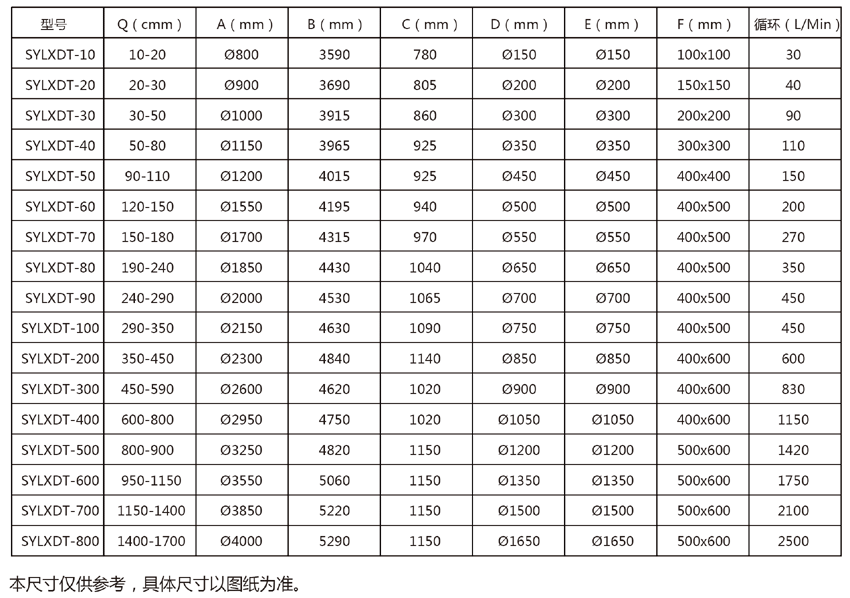 洗滌塔風(fēng)量與尺寸對(duì)照表: